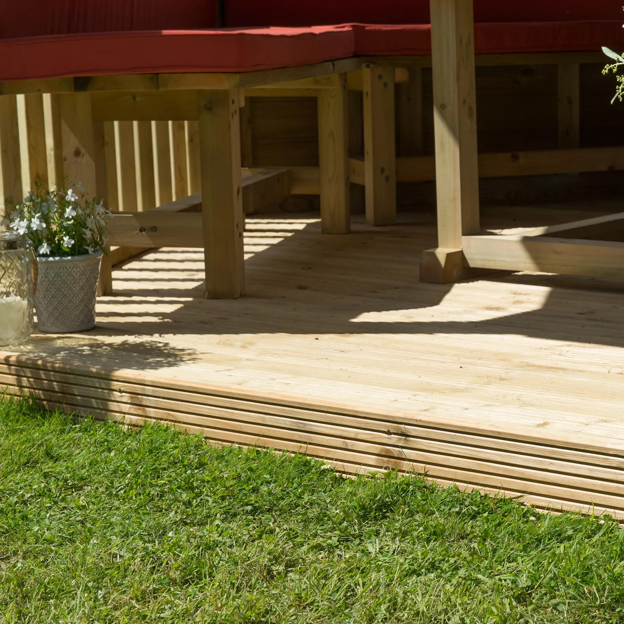 - The substantial uprights are secured to the base that features profiled deck boards, while at the top steel brackets secure them to the perimeter frame, giving the Gazebo immense strength and rigidity
